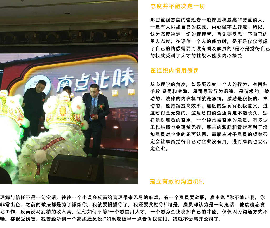 團(tuán)隊(duì)精神的形成并不要求團(tuán)隊(duì)成員犧牲自我,相反,揮灑個(gè)性、表現(xiàn)特長(zhǎng)保證了成員共同完成任務(wù)目標(biāo)而明確的協(xié)作意愿和協(xié)作方式則產(chǎn)生了真正的內(nèi)心動(dòng)力。團(tuán)隊(duì)精神是組織文化的一部分,良好的管理可以通過(guò)合適的組織形態(tài)將每個(gè)人安排至合適的崗位,充分發(fā)揮集體的潛能如果沒(méi)有正確的管理文化,沒(méi)有良好的從業(yè)心態(tài)和奉獻(xiàn)精神,就不會(huì)有團(tuán)隊(duì)精神。